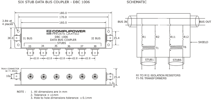Compupower provides Connectorized Data Bus Couplers with Single, Dual, Four and Six Stubs. These Couplers are available with and without internal terminations.